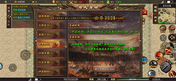 3、及时加入帮会,与帮会成员一起组队参加活动,boss等任务