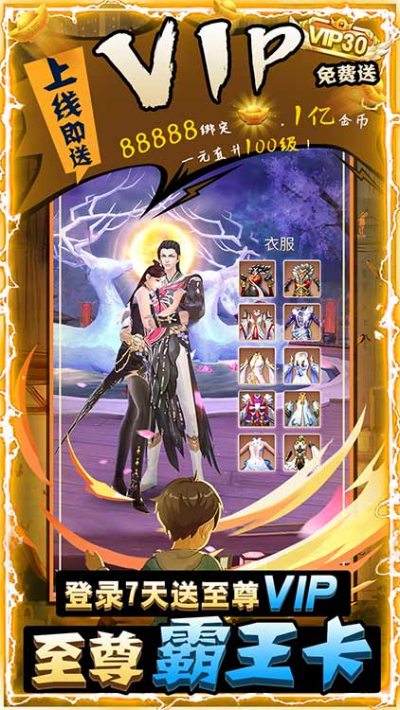 9、上线送99999绑元,9999万金币,再送超级寻宝1000连抽,超级首充直升王者VIP