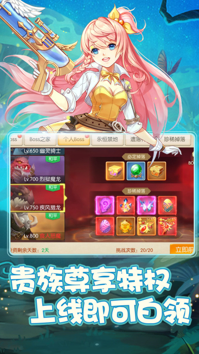 ★特权卡功能福利最多可以每天领取20万元宝,更有顶级神装一套免费领取