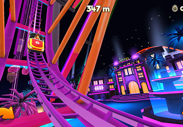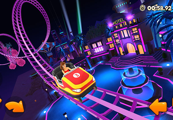 3、过山车的轨道是弯弯曲曲的,玩家们需要在游戏里来及时的转变方向,按照轨道来行驶;