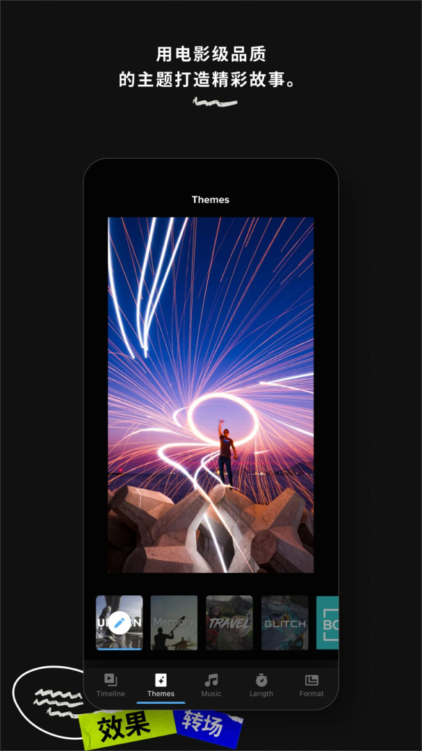 将您的影像复制到手机上,即可轻松转换成自带音乐等效果的精彩视频。