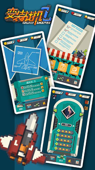 《变装战机2:银河射击》是一款在太空中进行战斗的飞行射击手游,你将控制自己的太空战舰进行射击,滑动屏幕来进行飞机的移动来躲避敌人的弹幕攻击,收集路途中的金币可以用来制造其他类型的战机。