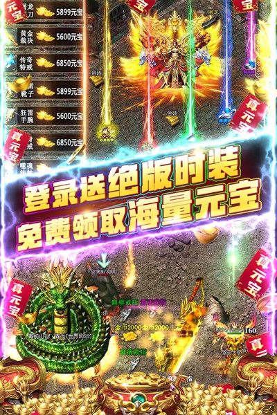 屠龙再现,闯天关爬天梯无限制pk,万人同屏激战。