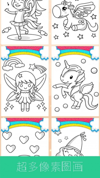 每张图片上均标有数字,按数字顺序为各部分着色,就可完成一张很好的艺术作品!