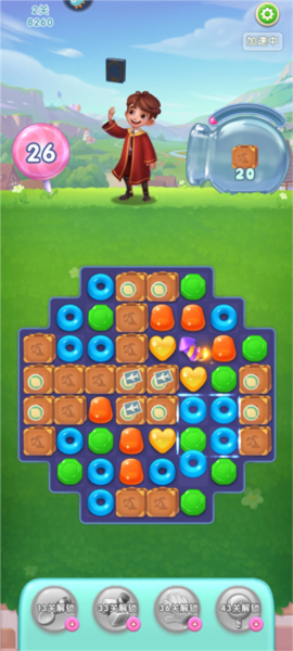 3、独特的三消玩法设计,超过3000个精心设计的关卡等你挑战,你能收集各式各样的美食,你也能见到可爱的小动物;