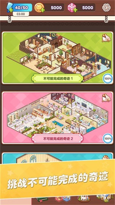 卡哇伊之家这款画面风格相对治愈的家居装饰类休闲小游戏。在这款游戏里处处充满惊喜、千件装饰、万种组合、对战不可能完成的奇迹、装饰属于自己的小家、达到你粉嫩的少女心。感兴趣的玩家们朋友们快来免费下载体会吧!!!