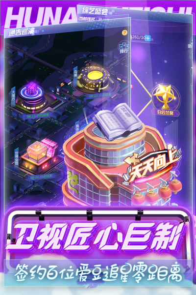 《芒果小镇》这款以湖南卫视综艺矩阵为基础,签约明星加盟到综艺节目的模拟经营+明星养成游戏。在游戏里,你将扮演芒果小镇的镇长,建设《快乐大本营》、《天天向上》、《百变大咖秀》、《声临其境》等综艺摄影棚,同时提升自己的小镇实力签约自己钟爱的明星,参与各大综艺拍摄,实现你的金牌制作人梦!以及与爱豆之间的养成,为爱豆疯狂打CALL。你还在等什么?