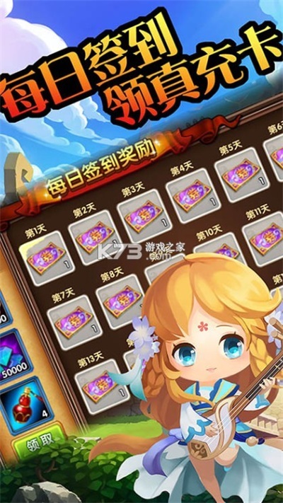 女神猛将传天天送真充版这款三国题材的Q萌卡牌冒险手游。在这款游戏里玩家们能领取多种人物皮肤,能快速的开启战斗,能领取大量的游戏经验卡,不仅有独特的玩法,活动的奖励也十分多种多样。热爱的玩家们快来免费下载试试吧!!!