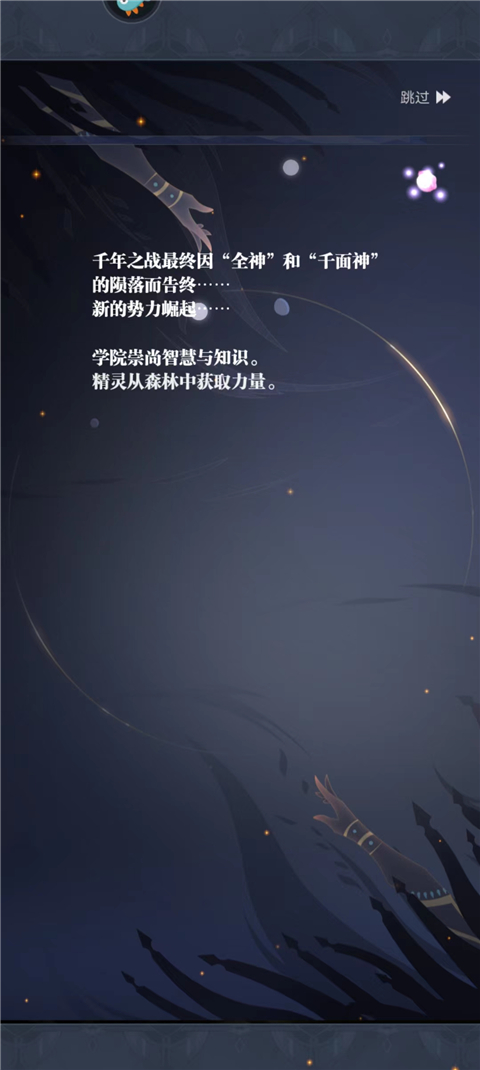 2、开始文字剧情,点击跳过;