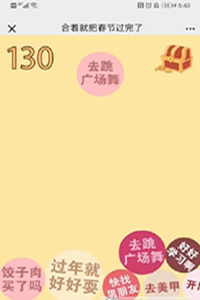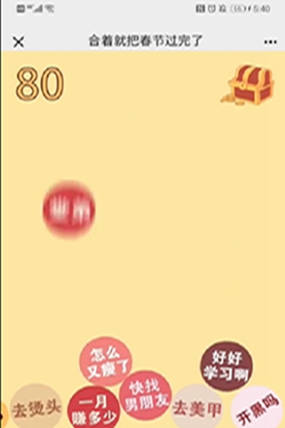 各种过年活动每次都会出现在游戏屏幕上,玩家们要做的是选择一个下落点来扔出这个活动。
