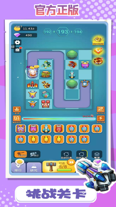 卡卡保皇这款益智策略塔防游戏。 点击即玩,一秒加载! 内含数十种基础炮台,十余种特殊炮台,5000多门关卡,大量随机地图; 研究进化,提升科技,合成营造,升级铭文; 发动智商,营造属于你的最强阵容, 在世界排行榜上冲击你的排名吧!