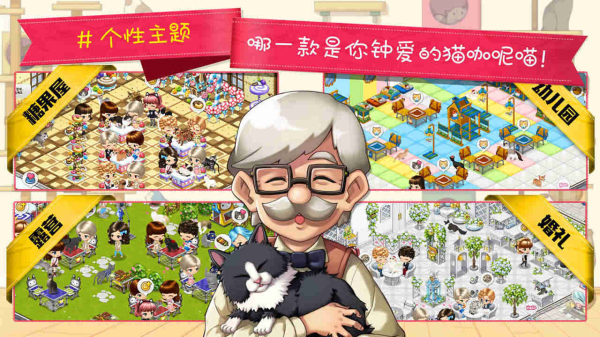 招待爱猫的客人,经营猫猫咖啡屋 当您收养起一只猫咪开店时,爱猫人士们就会络绎不绝的前来您的店铺吸猫,在您的猫咪陪伴客人时,店铺也要购进供客人取用的饮食,不停升级设备,最终将您的店铺经营成广受好评的猫咖。 华美多变的房间装饰! 用猫咪幼儿园、冬季山庄、洛可可、普罗旺斯等多达19种主题家具来装饰您的店铺!让猫咪们时而漫步于银河倒挂的深夜古堡,时而游荡于文艺气息浓厚的东方书斋,尽显高雅体态! 帮助流浪猫和弃猫! 街边有可怜的弃猫,窝在残破的小纸箱里,对任何人都展露出敌意,您能否软化它的内心,将它带回家呢? 公园鼠患,猫咪远征队出击!