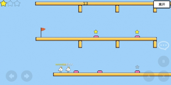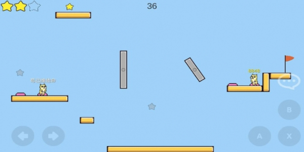 游戏总体上就有闯关模式和乱斗模式,闯关又分为新手专区,玩家地图。闯关模式就是把随机的几名玩家放在一个地图里面,争相跨过障碍奔向终点就好了。但是游戏的难度非常大,和马里奥一样都有滑步的机制,经常需要反方向使用方向键来刹车,并且判定比视觉效果还要严格,眼看着关系不大但死翘翘是常有的事情。并且地图中很多的机制都是不按常理出牌的设定,这不仅在玩家自制地图中有出现,新手地图也是如此。
