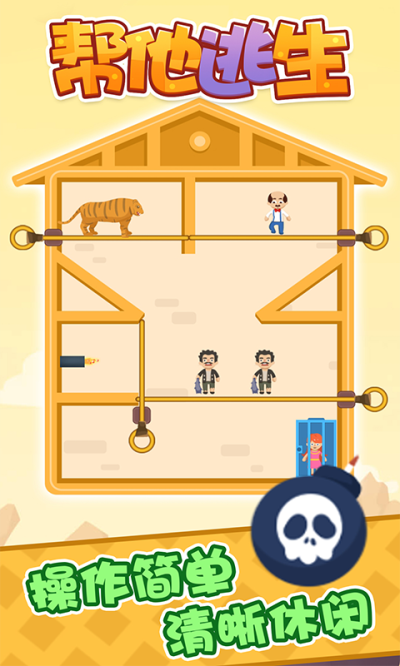 《帮他逃生》这款相对好玩的休闲解谜闯关游戏,游戏画面风格卡通精致,有着相对多的关卡对战,玩家们还可以在游戏里解锁趣味搞笑剧情,拉针解谜,解救同伴。相对独特新颖的拉针玩法,带给大家的体会特别好,拉针的时候需要关注太多细节。