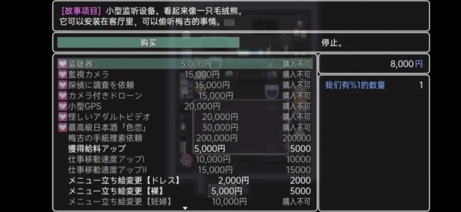 随着剧情推进买完标注着♡的物品