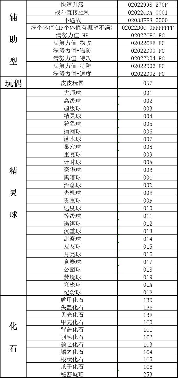 1.辅助型+玩偶+精灵球+化石
