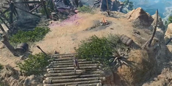 2、到达之后需要从下图位置的岩石位置爬上去并进入一个小庭院当中;