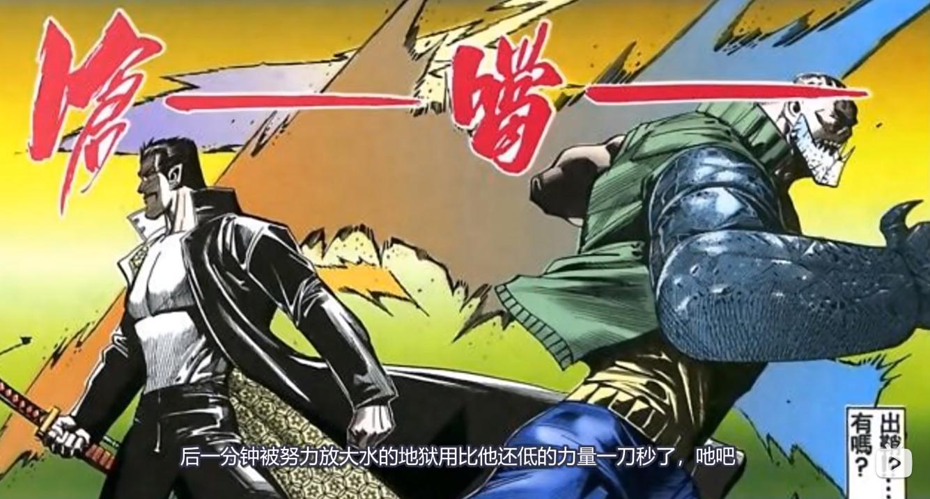 钢颚刚说完名句,不出意外的被地狱一刀秒了。前后反差过于喜剧,导致这句话开始成为名梗。
