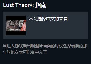 怎么样?小编为你带来的《Lust Theory》怎么改中文攻略这篇攻略有没有帮你解决问题呢?如果解决了,希望大家不要吝啬夸奖,在评论区多多给小编留言鼓励,让小编能够更有动力为大家带来更多好的攻略。