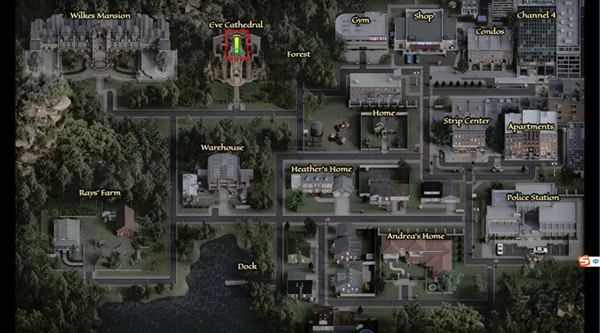 介绍完后,您看到城镇地图。 如果玩过纳迪亚之宝的话这该看起来非常熟悉。 大片的绿色显示推进故事所需完成的项目。 时间只是一个幻象。 如果有多个! 你可以按任何顺序完成它们,但必须全部完成才能推进故事。 只因为有一个! 并不意味着需要做的一切就是该位置。 左键单击该位置即可前往夏娃大教堂。 如果没有进入该区域,请再次单击步行道。