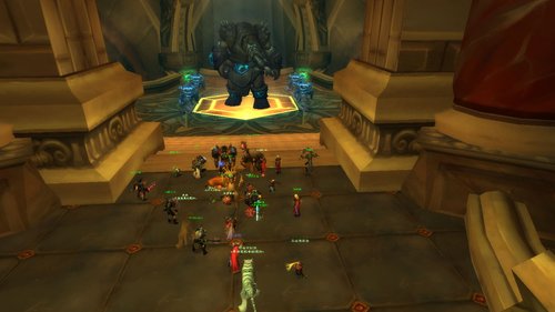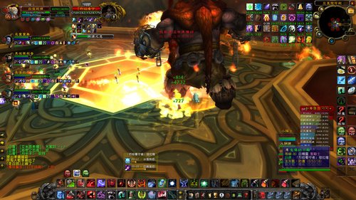 这只王要注重的是跑位地上的火随时要注意,特别是场地中间会有-块火焰色的地板,很难看出来上面是否有火焰,因此最好不要站中间或者多多注意自己的DEBUFF.最担心的是王在AE的时候,你的地上正好起火,这样就会很危险..目前来说,通常采用坦尽量不移动位置,近战群的地方起火就自己换位置跑开,但是切万不要在王使用熔能拳击的时候站在王的前面,准被秒.