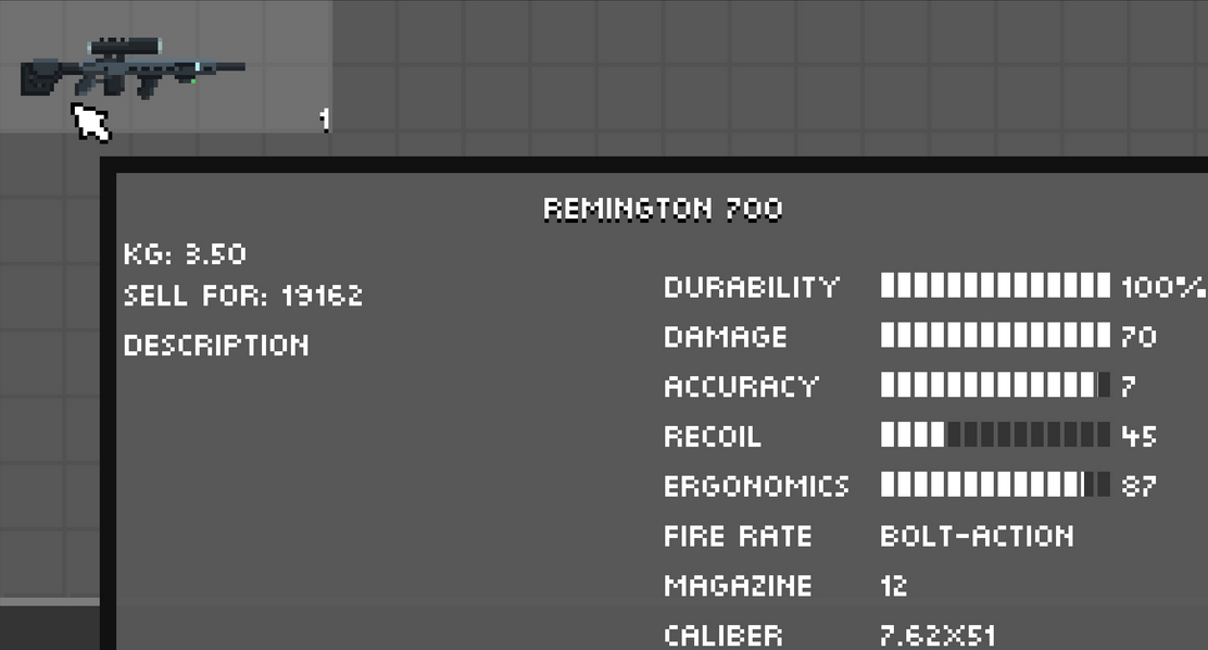 最好的握把为6-8的shift握把或者3-25的斜握把。(突击步枪要低后座,狙要高人机)消音器可以避免敌人立刻发现你,但是会降低其标注百分比的伤害,需要自行衡量。单发伤害最高武器为雷明顿700,发射M61时穿透高达65,94%的概率击穿6级甲。最高伤害58*0.85(穿甲)*12(moder)*26(狙击+隐匿)*11(靶场)=1692